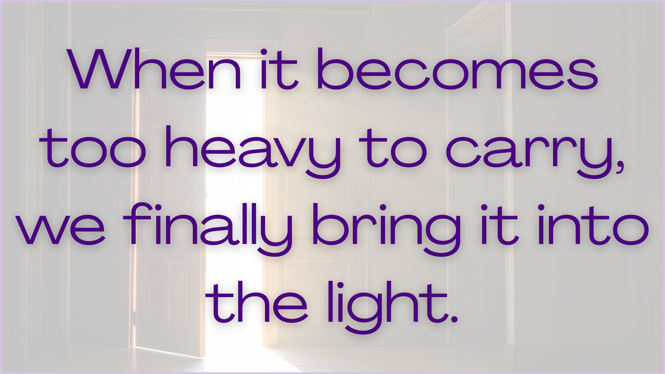 It becomes too heavy to carry quietly, and we finally bring it into the light. We start talking about it. Naming it.